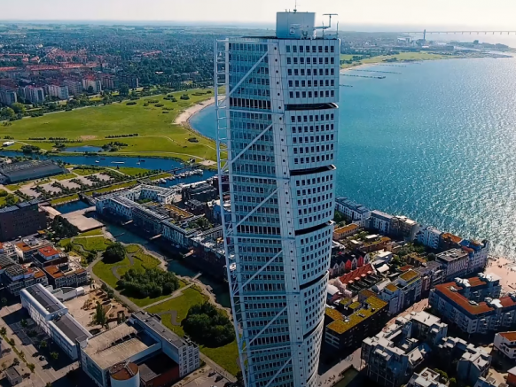 :: Turning Torso: im nachhaltig gebauten Stadtteil Västra Hamnen manifestiert sich Malmös Streben nach grünem Leben und Wohnen. Das Bild prägt der 190 Meter hohe Wohnturm vom Architekten Santiago Calatrava.